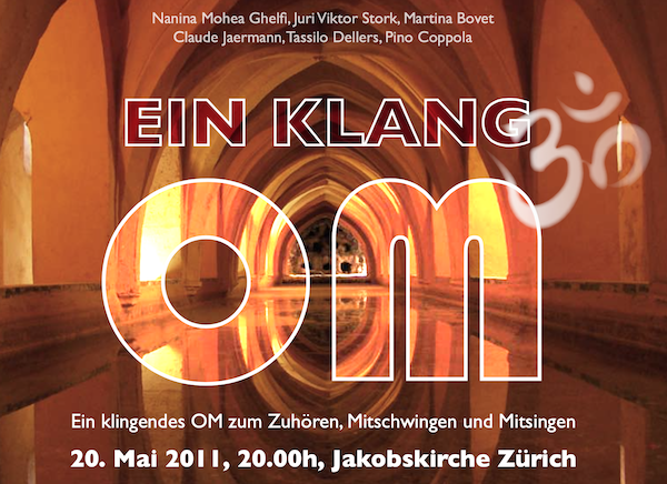 Ein Klang OM war ein Klangexperiment am 20. Mai 2011 in der Jakobs-Kirche Zürich. Gemeinsam mit rund 130 TeilnehmerInnen sangen und meditierten wir 2 Stunden lang über die Silbe "OM". Es war ein Fest für die Seele. Mit Nanina Ghelfi, Juri Viktor Stork, Martina Bovet, Claude Jaermann, Tassilo Dellers und Pino Coppola.